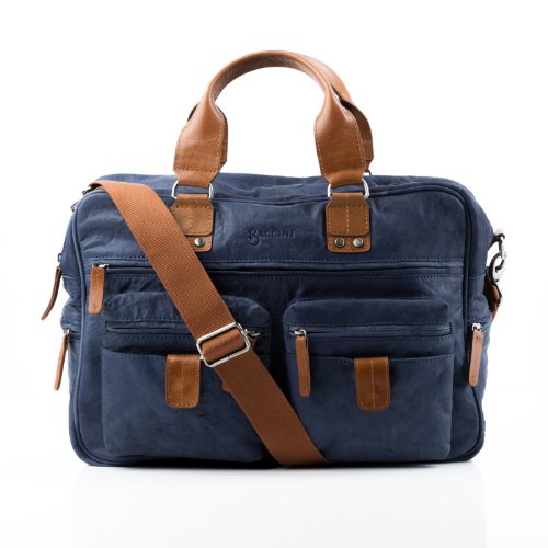 BACCINI borsa da viaggio DEREK: borsone tracolla lavoro artigianale - valigia weekender vera pelle denim-blu (40 x 27 x 15 cm)