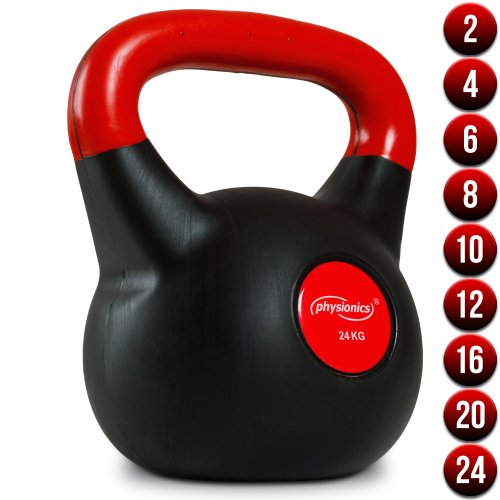 Elegante design : Kettlebell rivestimento nero opaco con maniglie in rosso e rossa dinamica con peso riportato sul label