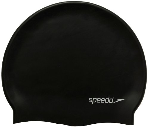Speedo Plain Flat Cuffia da piscina in silicone, Nero