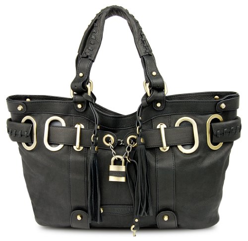 BOVARI XL Borsa donna - Padlock Shopper - Nero - Dimensioni(cm): 42(L)x 26(A) x 8 (P) - vera pelle - super soft limited edition